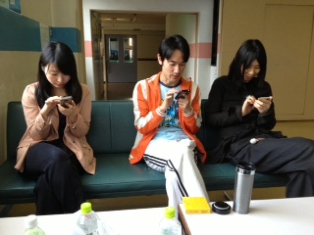お稽古中は楽しくも真剣な皆様も、休憩中は、揃ってスマホいじりですよ。