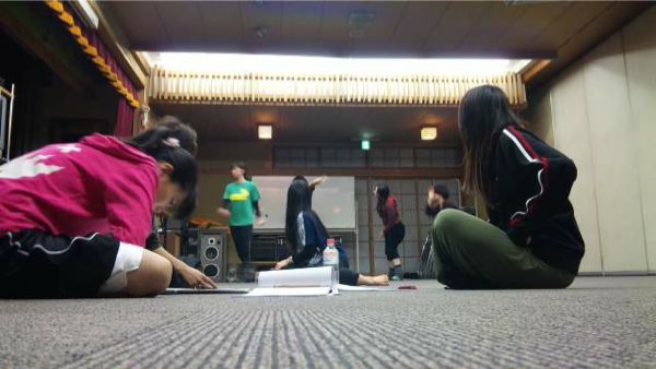 ご覧のように、稽古場はダンスチーム(奥)と芝居チーム(手前)に別れ、同時進行で進んでいきます。